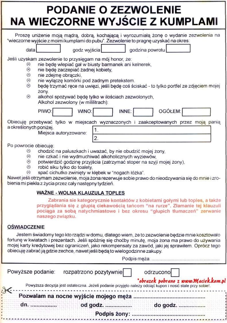 Wolalam prosbe o wyjscie wieczorem kolesia z kumplami <banan>
