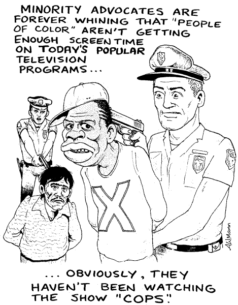 Poza tym...ten drugi obrazek to taka satyra, czego nie zauważyłeś. Jak dotąd oglądając "Cops" widzę właśnie przewagę tzw. white trash, czyli kolesi w wife-beaterach; uczesanych w stylu, o którym śpiewał Kazik w piosence "12 groszy", przewożacy crack swoim Dodgem, rocznik 78. Taki z gatunku 'it doesn't get any whiter than this'.