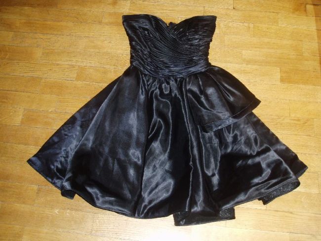 1. wieczorowa suknia, na zdjeciu wyszla kiepsko, ale jest sliczna, gorsetowa gora, wiazana po boku kokardka, ktora tu wyszla jak falda jakas ;) elegancka